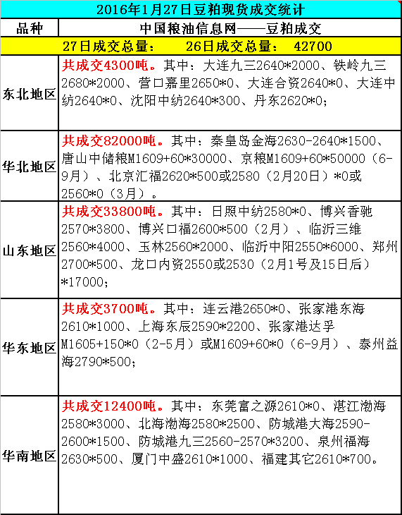 2016年1月27日豆粕现货成交统计