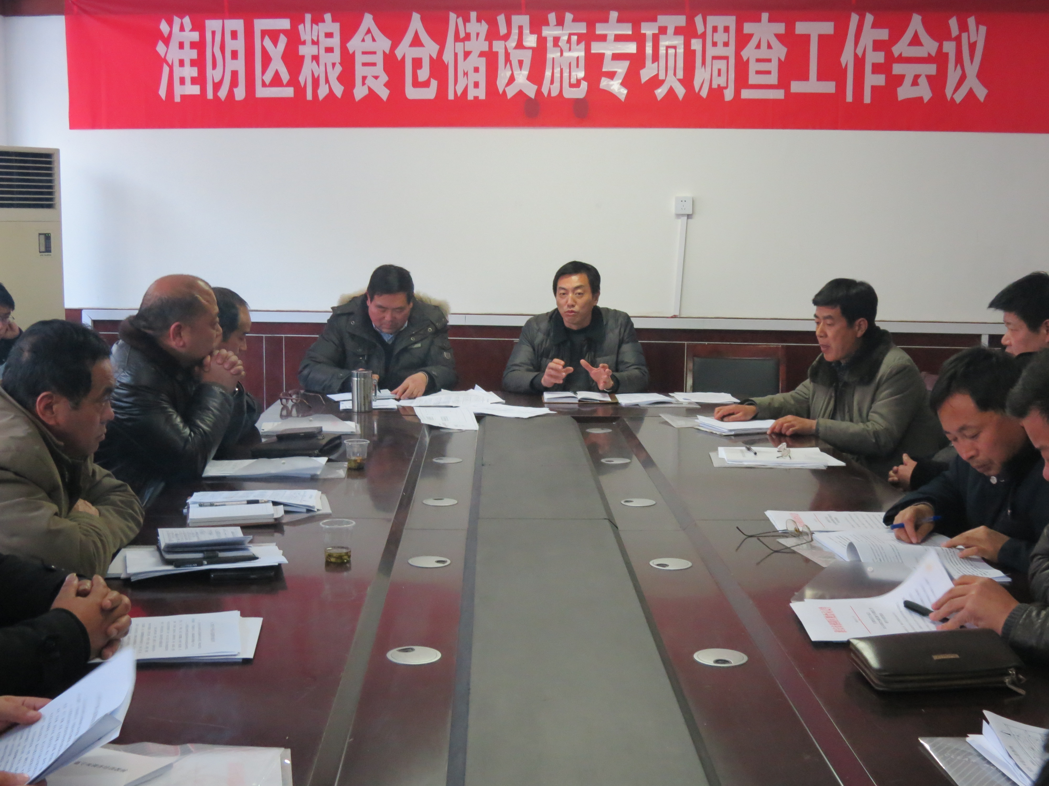 为全面做好粮食仓储设施专项调查工作,淮阴区粮食局于2015年元月8日下午召开由基层库、所、站负责人,具备一定规模的粮食加工、油脂加工、饲料加工以及民营企业相关负责人,粮食仓储设施专项调查工作领导小组成员等相关人员参加的会议,学习、传达会议精神,布置专项调查工作:
