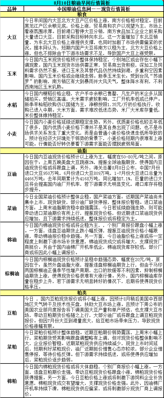 ·8月10日粮油早间行情简析 (2015-8-10 9:17:57)